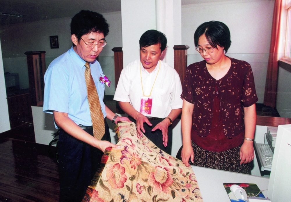 中共浙江省委書記(時(shí)任省委副書記)夏寶龍和中宣部常務(wù)副部長(時(shí)任中共浙江省委常委、宣傳部長)黃坤明在浙江宏達(dá)經(jīng)編股份有限公司車間