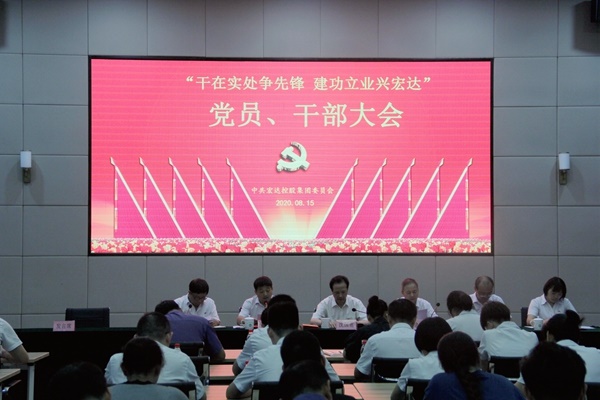 2020年8月15日下午,中共宏達控股集團黨委在宏達高科控股股份有限公司召開“干在實處爭先鋒,建功立業(yè)興宏達”黨員干部大會,慶祝中國共產(chǎn)黨成立99周年,動員集團廣大黨員干部為建設(shè)“重要窗口”多作貢獻。集團黨委書記、董事長沈國甫攜全體黨委成員、集團所屬支部全體黨員及入黨積極分子、部門助理以上干部共65人參加會議。