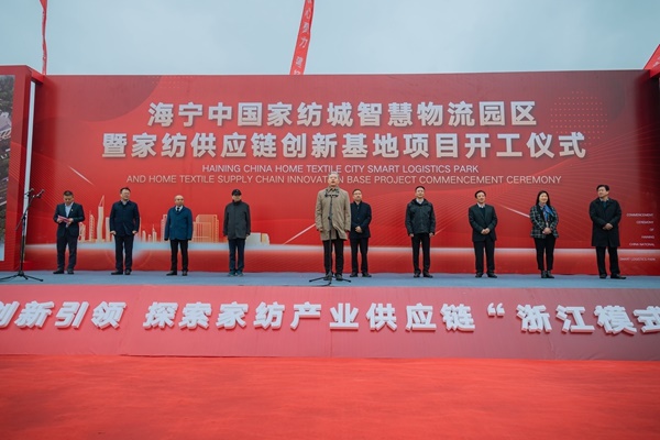 11月27日上午,海寧中國家紡城智慧物流園區暨家紡供應鏈創新基地項目開工儀式在智慧物流園區工地舉行。中國紡織工業聯合會副會長、流通分會會長夏令敏,海寧市政協副主席史丹夫,許村鎮黨委書記杜瑩池,浙江省倉儲行業協會會長、供應鏈協會執行會長趙成鋒,宏達高科董事長沈國甫等領導,以及項目施工單位、許村家紡企業、物流企業代表等百余人共同見證項目啟動。