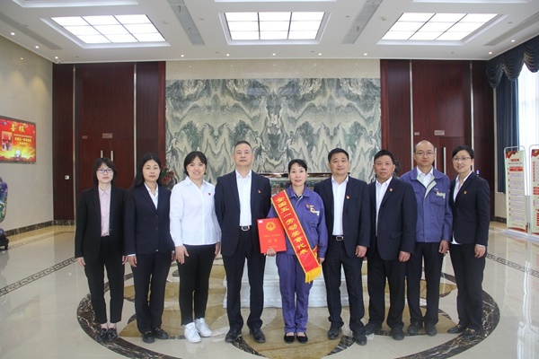 2021年4月28日上午,宏達(dá)高科管委會(huì)領(lǐng)導(dǎo)為公司織造部趙巧娟領(lǐng)獎(jiǎng)歸來舉行了歡迎儀式。
