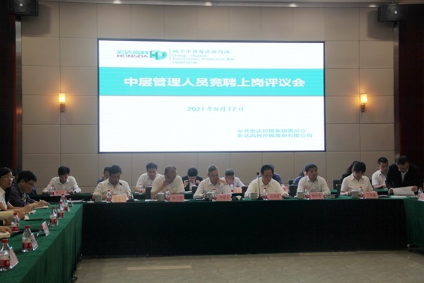 2021年5月17日下午,宏達高科在公司一樓會議室召開了中層管理崗位競聘上崗評議會。公司管委會全體領導、16名參與競聘人員、6名述職人員、及10名民主評議人員等出席會議,評審小組由6名公司領導擔任。