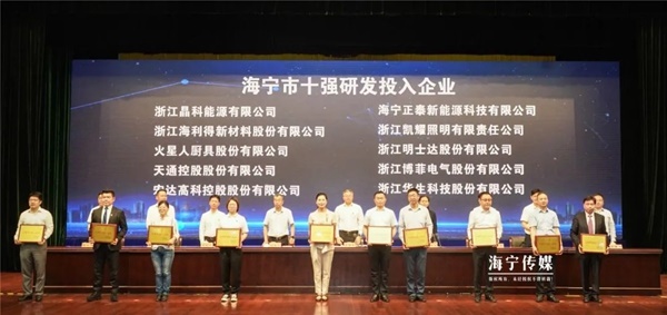 在5月26日舉行的“才聚潮城·科創(chuàng)海寧”2021年海寧市人才科技創(chuàng)新暨高質(zhì)量發(fā)展大會上,宏達(dá)高科被評為海寧市十強(qiáng)研發(fā)投入企業(yè)。