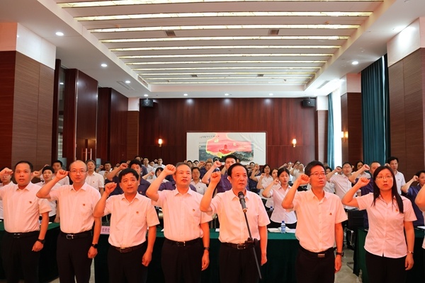 會上,全體黨員在沈國甫書記的領誓下,舉起右拳,面向黨旗莊嚴宣誓,重溫入黨誓詞;集團黨委委員顧偉鋒同志宣讀了集團黨委《關于開展“學規定、悟思想、爭先鋒”慶祝建黨104周年系列活動的通知》;集團黨委副書記許建舟同志宣讀了集團黨委《關于表彰優秀共產黨員的決定》,表彰了過去一年涌現出的毛方飛等10名優秀共產黨員;行政支部錢莉代表獲獎優秀黨員發言。