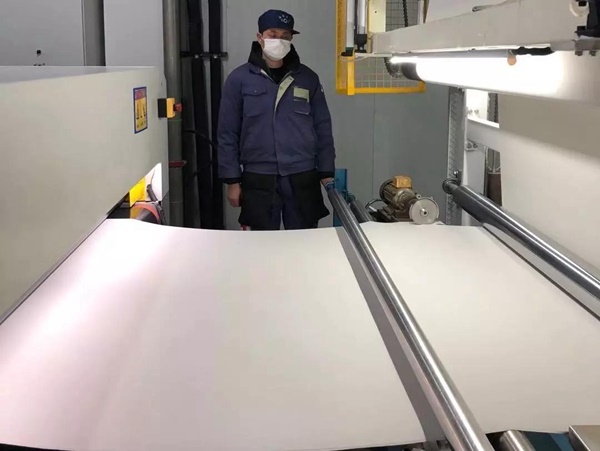 復(fù)工當(dāng)天,車間內(nèi),只見員工們戴著口罩在生產(chǎn)線上忙碌。由于生產(chǎn)設(shè)備高度自動化,一名員工可以看管5至6臺設(shè)備,因此車間內(nèi)人員并不密集,生產(chǎn)也是井然有序。正在生產(chǎn)的這批汽車頂蓬面料,后天將發(fā)給客戶,以滿足客戶的需求。公司副總經(jīng)理孫云浩表示,公司目前已開啟織造和復(fù)合兩條生產(chǎn)線,等集中供熱啟動后,公司染整生產(chǎn)線也將恢復(fù)生產(chǎn);后續(xù)將根據(jù)產(chǎn)業(yè)鏈上游的供應(yīng)情況和下游的客戶需求情況逐步提升產(chǎn)能,爭取在15日全部恢復(fù)生產(chǎn)。