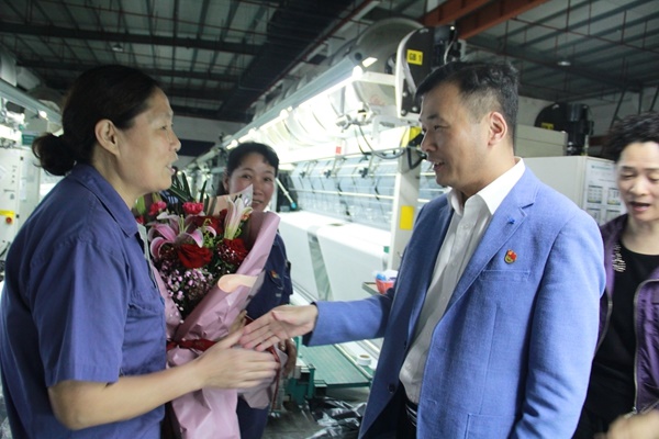 2019年4月26日上午,許村鎮黨委副書記朱洪海在許村鎮工會主席李瑞仙的陪同下,來到宏達高科走訪慰公司勞動模范,為他們送上慰問金,祝福他們過一個快樂祥和的節日。 在宏達高科,朱書記來到經編車間,慰問了全國勞動模范何娟鳳、嘉興市、海寧市勞動模范趙巧娟。何娟鳳和趙巧娟都是宏達高科的普通一線員工。十幾年來,她們在崗位上勤勤懇懇、苦練技能。其中趙巧娟曾被評為全國紡織工業技術能手,也是嘉興市最美職工。朱書記說,這樣的榮譽來之不易,并勉勵她們在崗位繼續努力,進一步弘揚工匠精神。
