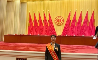 2021年4月28日上午,宏達(dá)高科管委會領(lǐng)導(dǎo)為公司織造部趙巧娟領(lǐng)獎歸來舉..