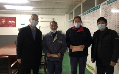 1月29日下午海寧市聯(lián)創(chuàng)辦副主任沈洵奔一行來到宏達高科慰問海寧市道德模范..